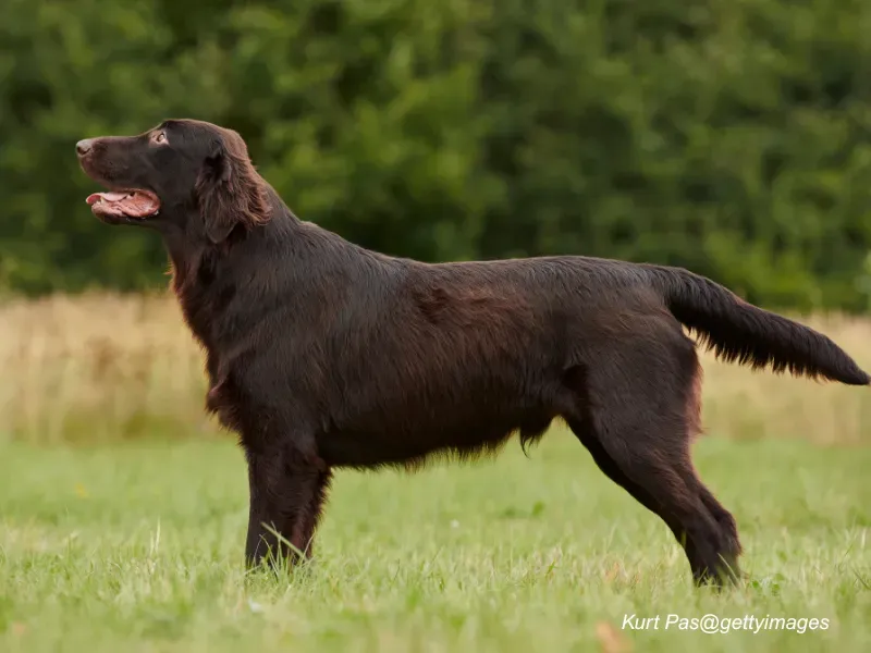 Their name comes from their distinctive flat-lying coat, which differs from the curly coat of Curly-Coated Retrievers or the dense undercoat of Labradors. Unlike other retrievers bred primarily for field work, Flat-Coats were always meant to be dual-purpose hunting dogs and family companions.